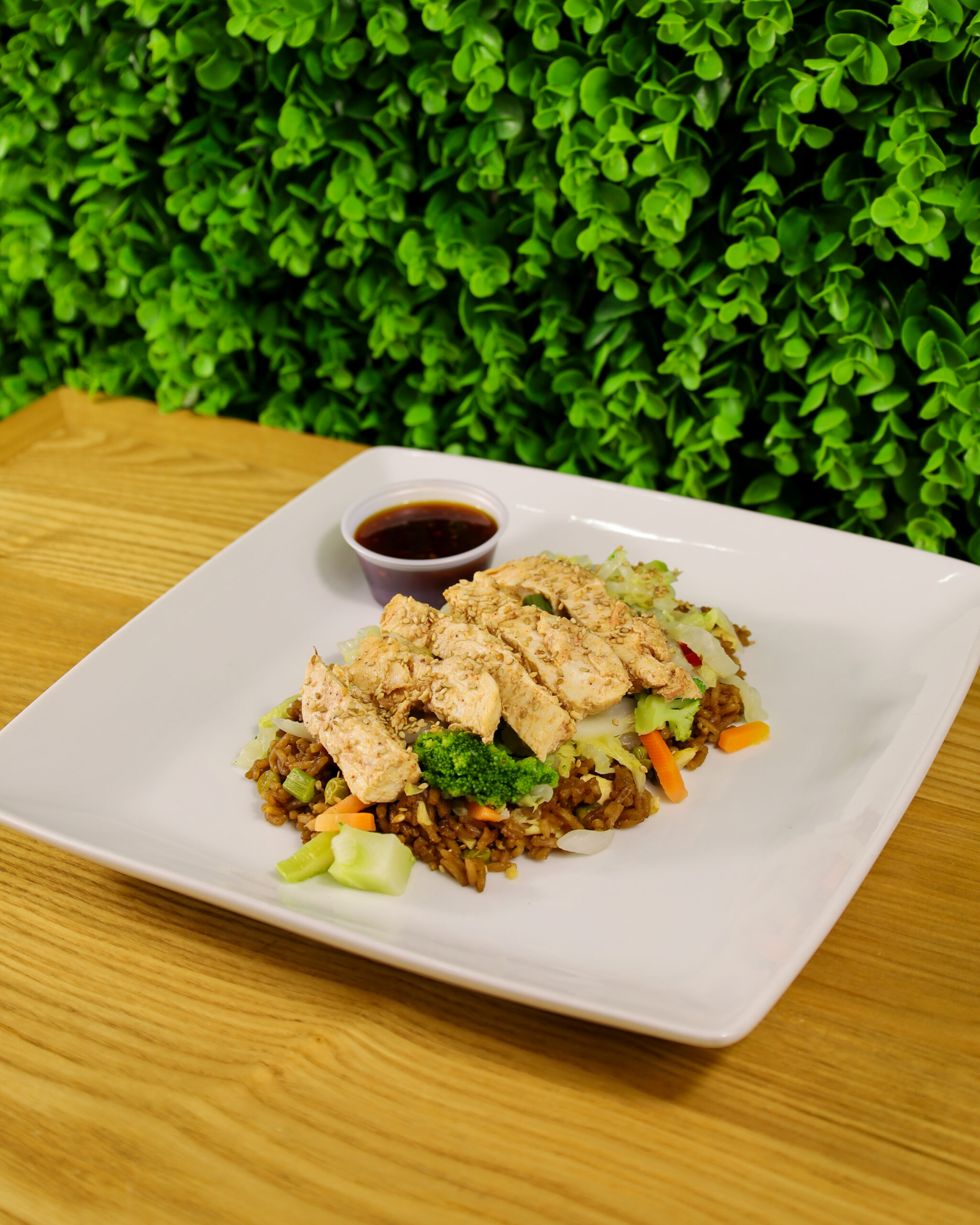 MARINATED CHICKEN BREAST PAIRED WITH STIR FRIED RICE, NAPA CABBAGE, STIR FRY VEGETABLES, & SIDE OF HHK ASIAN SAUCE